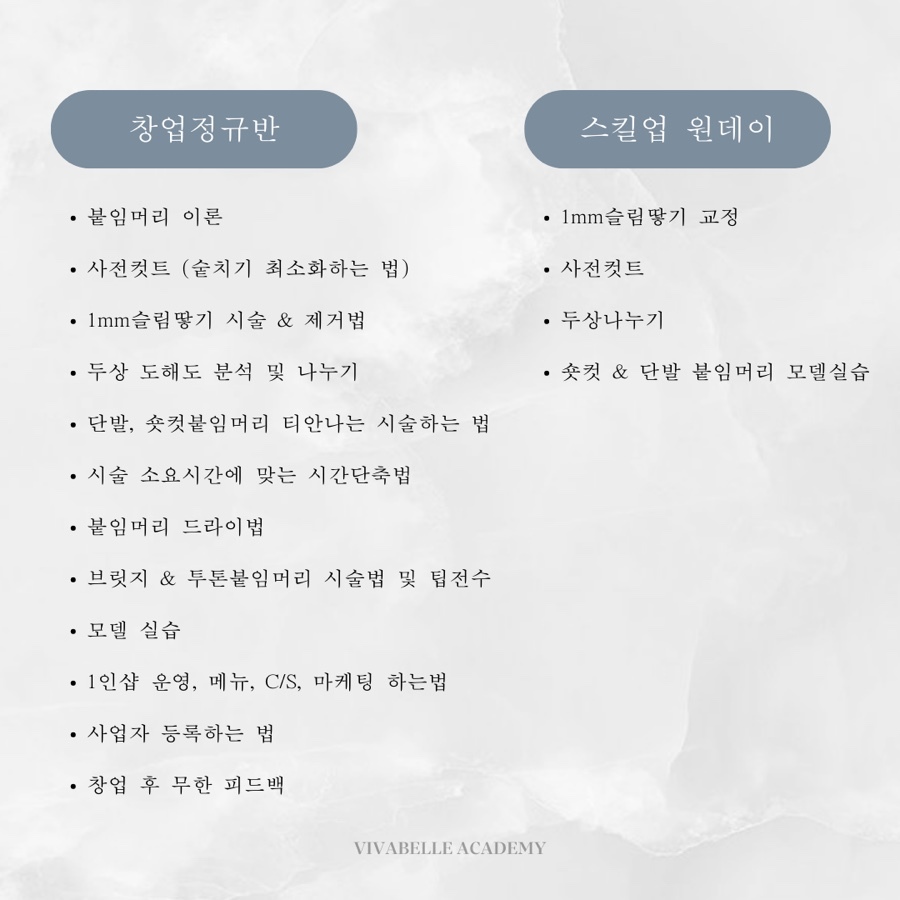 - 수강대상 : 창업이 목적인 붙임머리 초보자 (헤어경력 무관)
